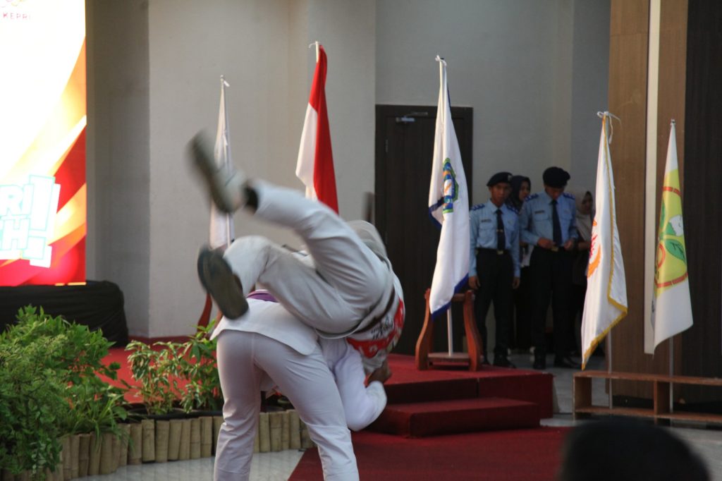 Usai sambutan para pejabat, suasana kembali meriah dengan penampilan atraktif dari para atlet jujitsu Kepulauan Riau. Mereka adalah Tomi Riono dan Danang, dua atlet jujitsu peraih perak dan perunggu di PON 21 Aceh Sumut 2024 yang mempersembahkan pertunjukan teknik bela diri yang memukau dan menggugah semangat para tamu undangan.