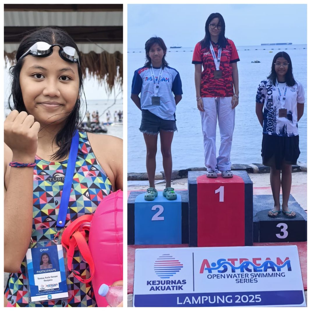 Konikepri.id – Kabar membanggakan datang dari dunia olahraga perairan Provinsi Kepulauan Riau. Atlet renang muda berbakat, Teresa Avila Seruni Renjana atau akrab disapa Rere, sukses menorehkan prestasi gemilang pada Kejurnas Renang Perairan Terbuka 2025 yang berlangsung di Kyoko Beach, Lampung, pada 30–31 Agustus 2025 diikuti 214 peserta.