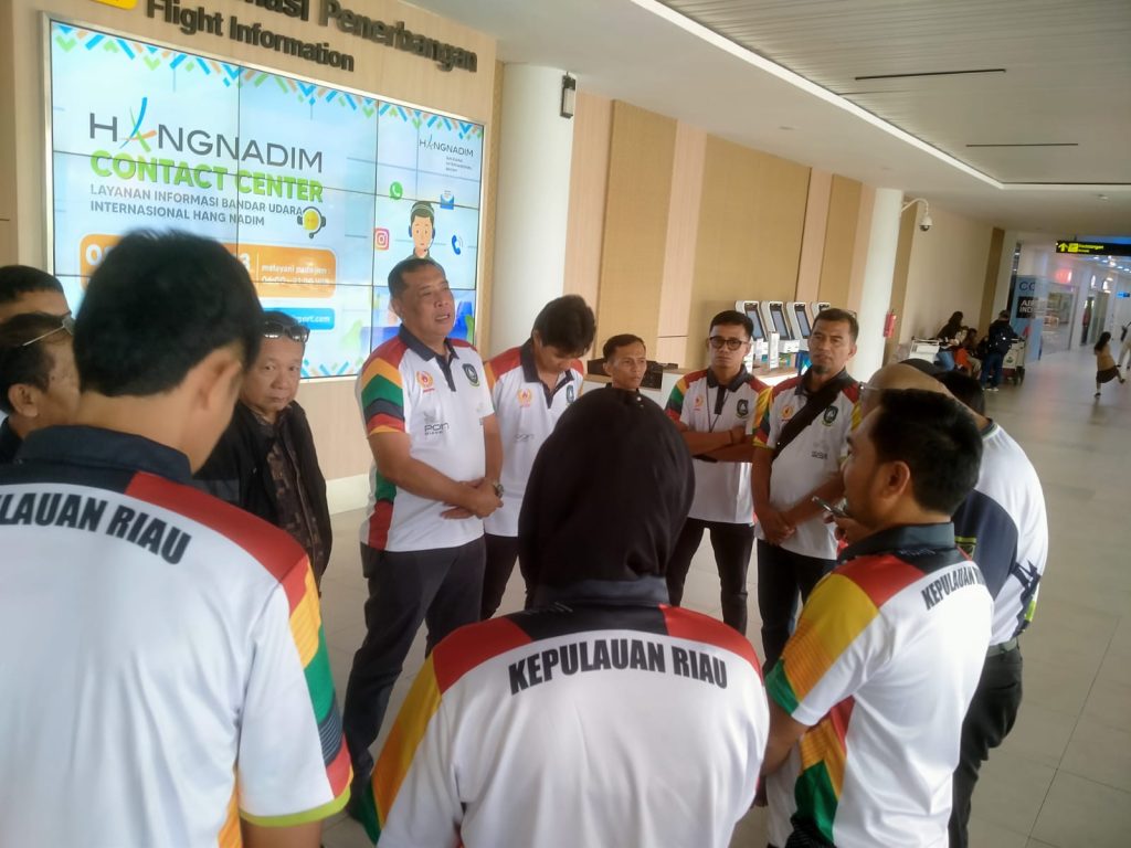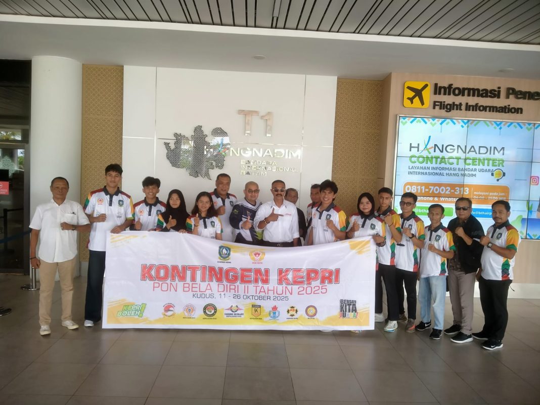Acara pelepasan berlangsung Rabu (15/10/2025) di Bandara Hang Nadim Batam, dipimpin langsung oleh Sekretaris Umum KONI Kepri, Dr. Suyono, SE., MBA., MM, didampingi Salman Achmad SIp selaku Kabid Organisasi dan Wakabid Deden Iwan Sukma, dan Kabid Media dan Humas KONI Kepri Heru Mardianto.