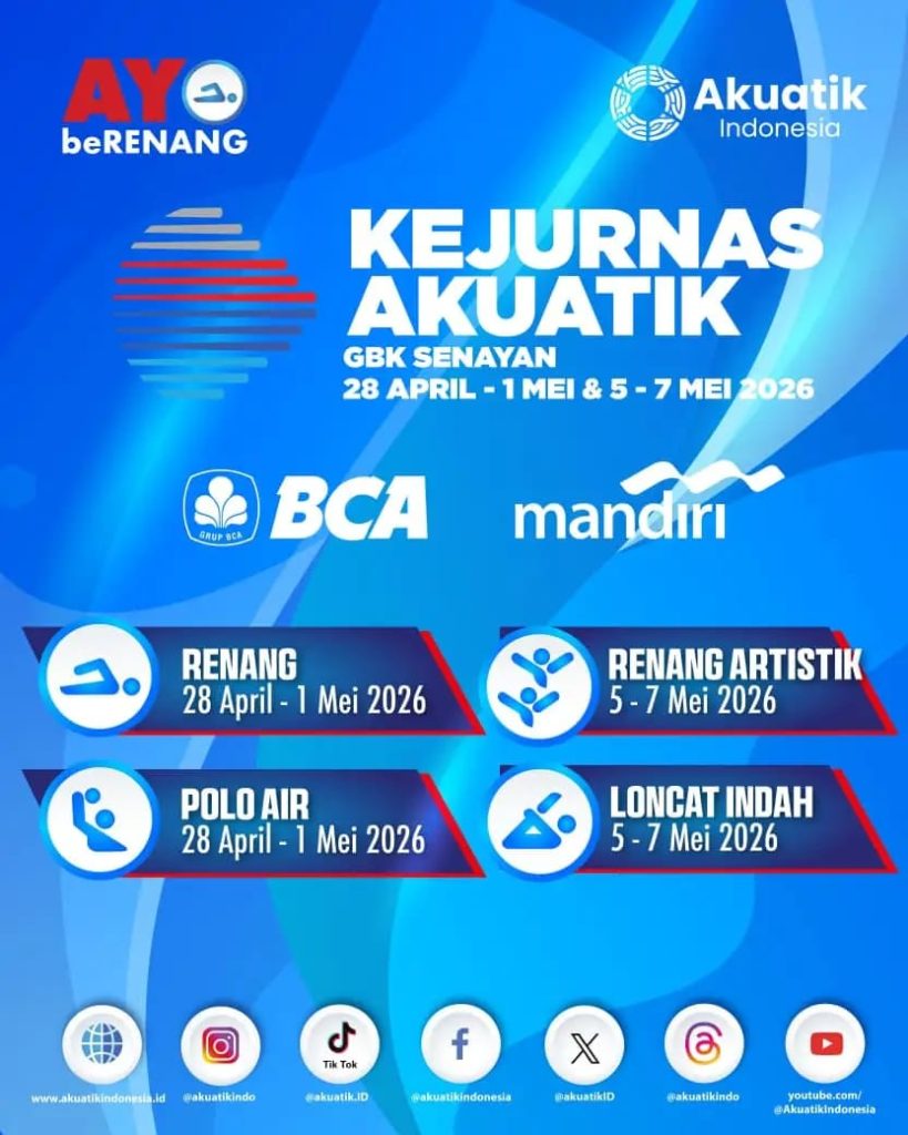 Kejurnas Akuatik 2026 sendiri mempertandingkan beberapa disiplin, yakni polo air, renang, dan loncat indah, yang diikuti oleh atlet-atlet terbaik dari seluruh provinsi di Indonesia.